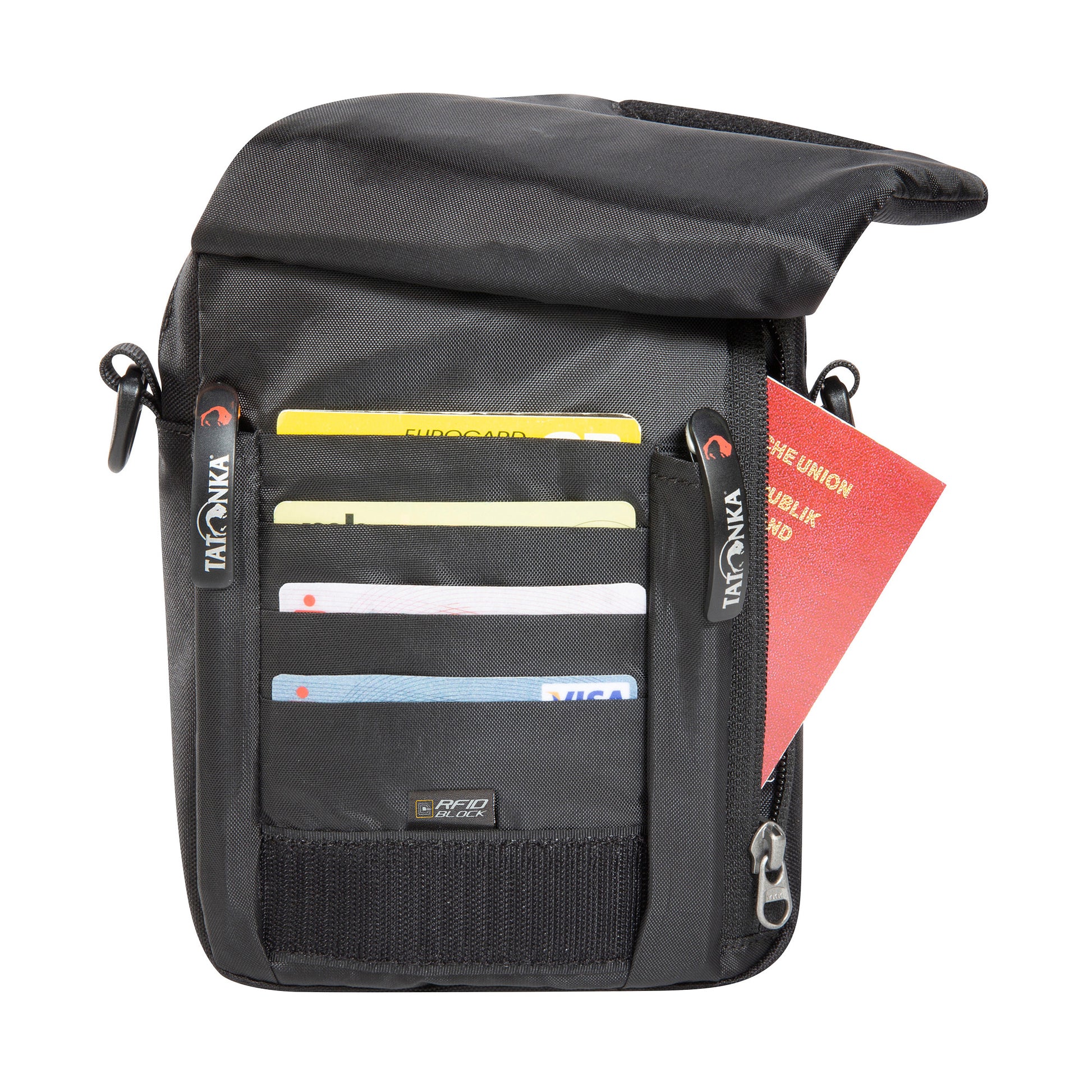 Check In RFID B can be worn over the shoulder or attached to a belt. Two zips provide access to the large main compartment. Under the lid are various zip-up pockets for all the little odds and ends needed when travelling.