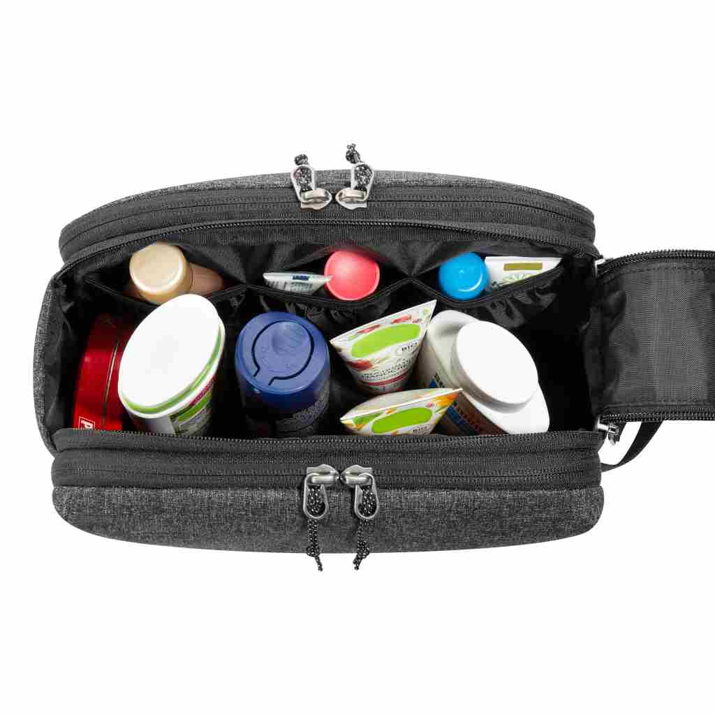 The Tatonka Cosmetic Double Zip Pouch is a large, practical toiletry bag designed for easy access and organisation. With a double zip opening, it allows cosmetics to be neatly arranged and quickly retrieved. Additional toiletries can be stored in the zippered compartments on either side of the bag. The bag is finished with a PFC/PFAS-free DWR coating, ensuring durability and water resistance while being environmentally friendly.