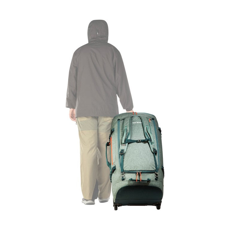 It can be pulled comfortably with the padded handle, but can also be carried as a backpack with the two shoulder straps that can be stored away when not in use.