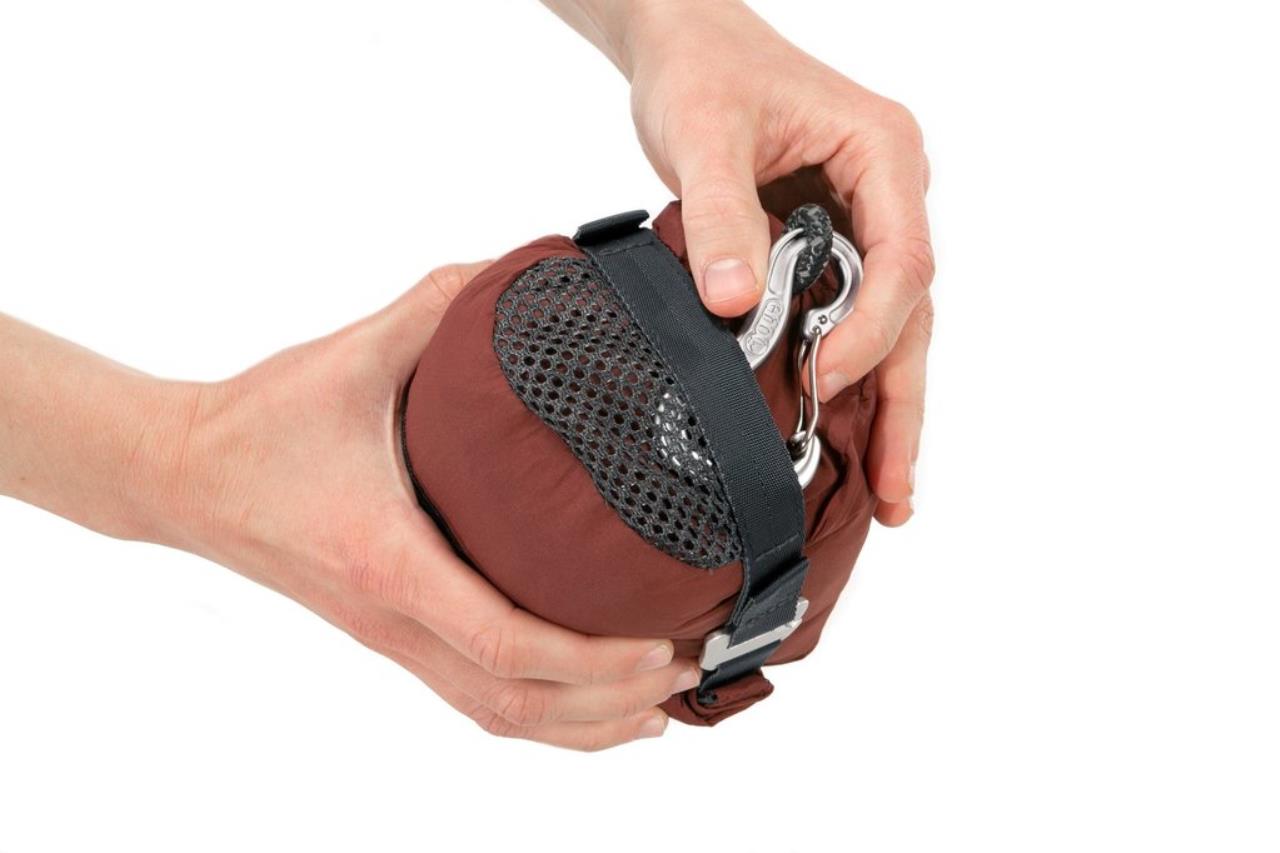 - Roll Top stuff sack integrates at carabiner for faster setup and easier take down
