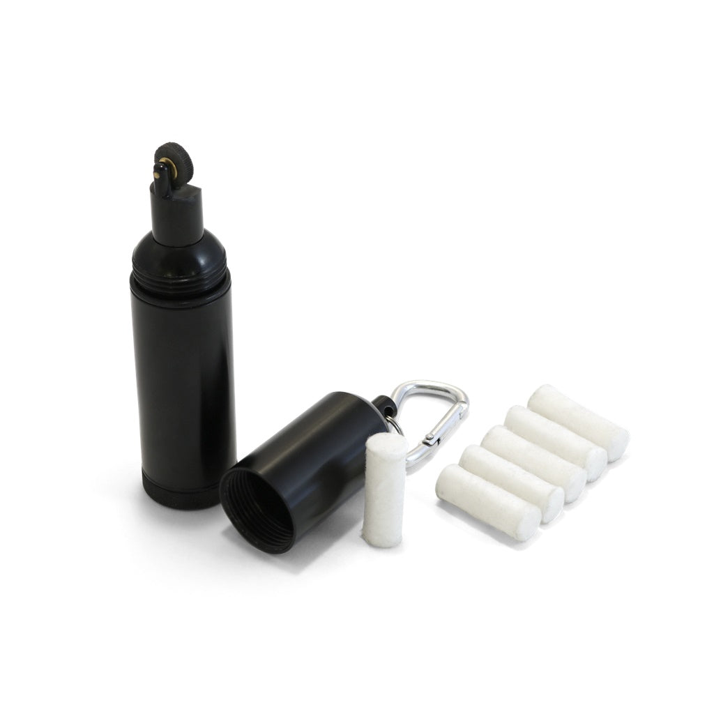 For reliable fire starting, Coghlan's Flint wheel provides an all-in-one kit, contained in a single, sleek aluminium capsule. This kit offers a convenient way to spark and ignite the included paraffin and cotton tinder, or various other firestarters with a simple and quick, one-handed operation.