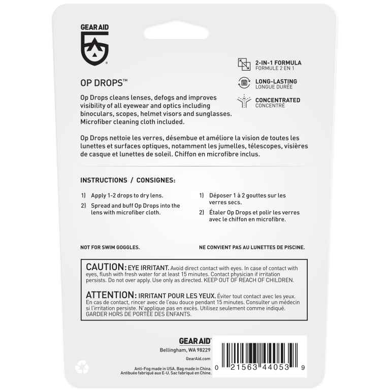 Op Drops Anti-Fog and Lens Cleaner keeps dry lenses, optics and eyewear free of frustrating fog. Squeeze the Op Drops formula on non-AR (anti-reflective) sunglasses, binoculars, spotting scopes, helmet visors, goggles, and eye shields. Then wipe with the attached microfiber cleaning cloth, which doubles as a carrying pouch, for lint-free cleaning power.