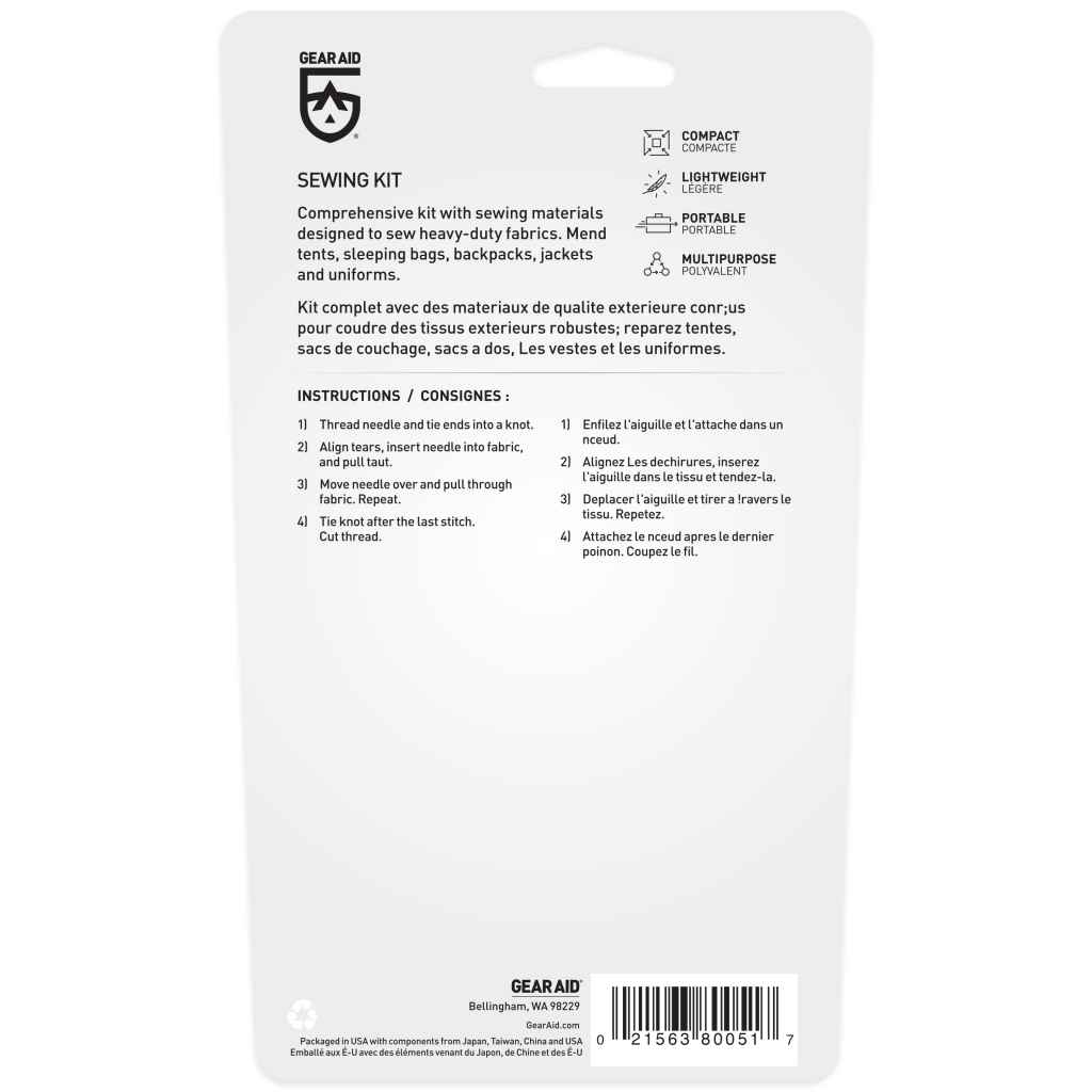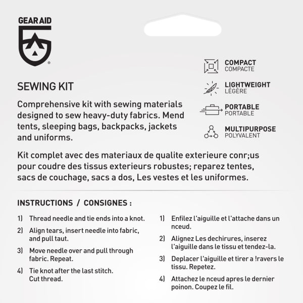 Sew torn fabrics and replace missing buttons anywhere you go with the GEAR AID® Sewing Kit. This compact sewing kit fixes ripped clothes, uniforms, tents, backpacks or any other heavy duty fabric that needs mending. Whether at home or in the field, this travel sewing kit lets you sew torn clothing and missing parts easily.