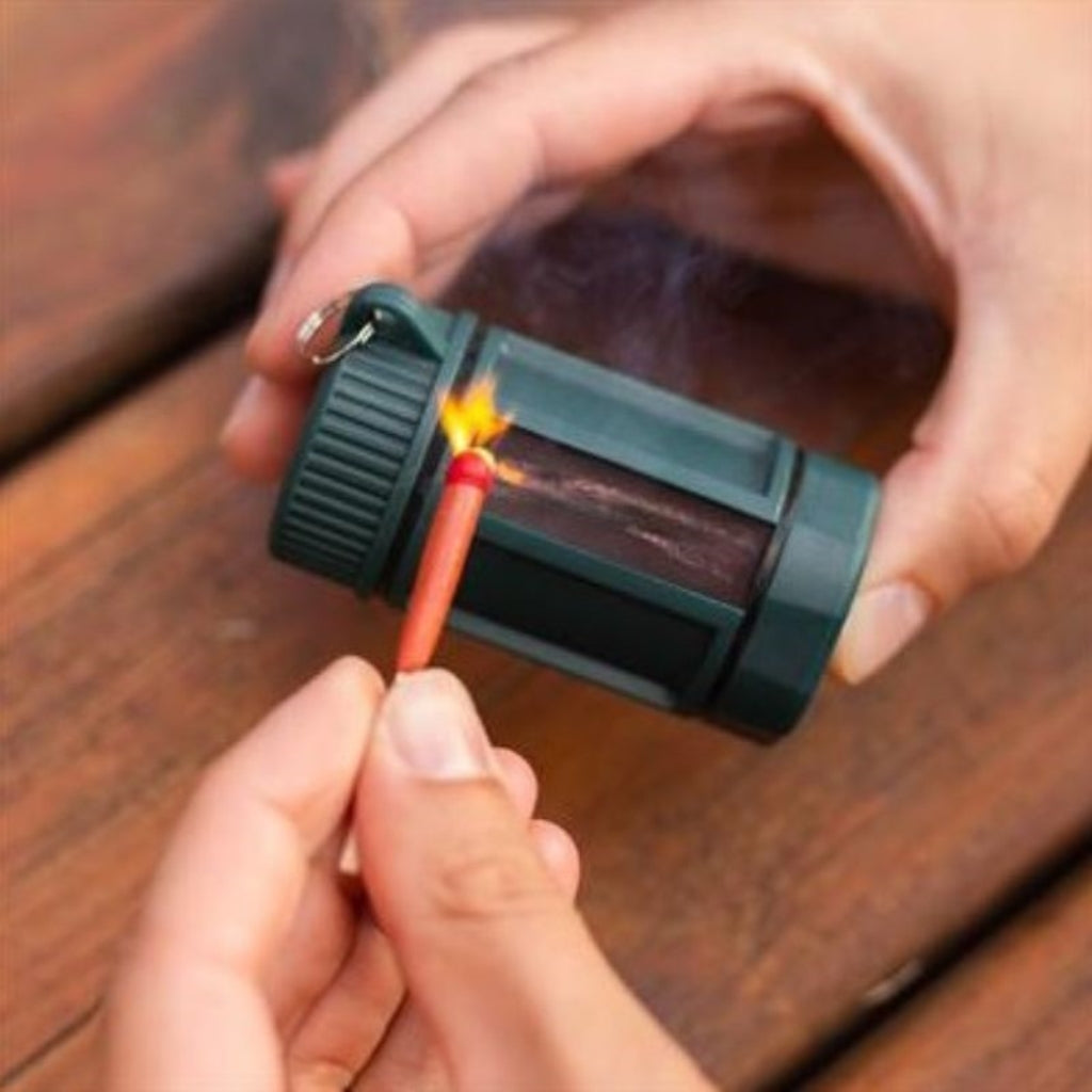 They easily ignite by striking the included strike pad on the outer of the case. They are protected by a rugged watertight case that features deep ridges making it easy to remove the lid even with wet or cold hands.