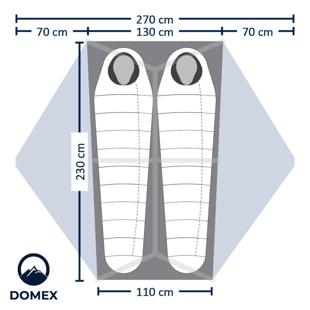 Easy to set-upLike all Domex tents, the hub frame design means that the tent is quick and easy for even one person to set up and being free-standing gives flexibility to erect the tent in all types of terrain, with the option of moving site before pegging the tent down.