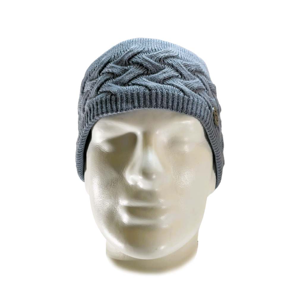 Dusty blue skullcap beanie with accent woven cable knit band and plush polar fleece lining for greater comfort and additional warmth