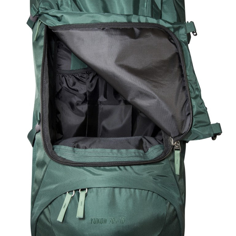 The latest upgrades make the Yukon even more versatile. The removable lid now doubles as a front pouch when attached to the shoulder straps or can be used separately as a bum bag or shoulder bag, offering a practical solution when leaving your pack at base camp or your accommodations. The throat extension has been redesigned for easier packing and better use of space in the top section of the pack.